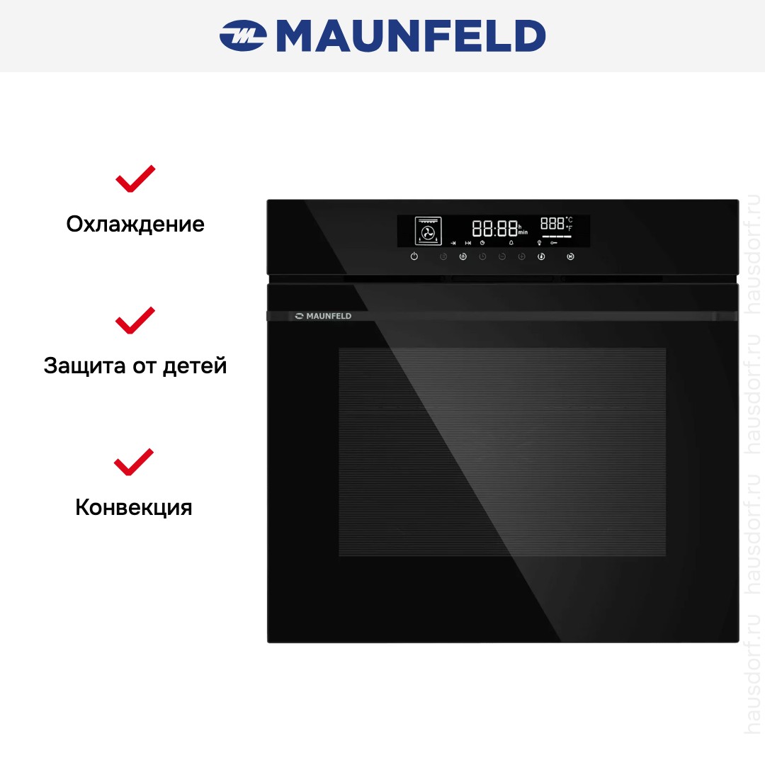Готовьте свои лучшие блюда и пробуйте новые рецепты с духовым шкафом Maunfeld AEOD76106B! Стандартные размеры и большой объем внутренней камеры — выбор тех, кто много готовит для семьи или частых праздничных встреч с друзьями. Желательно заранее продумать расположение такой модели в кухонном гарнитуре.
