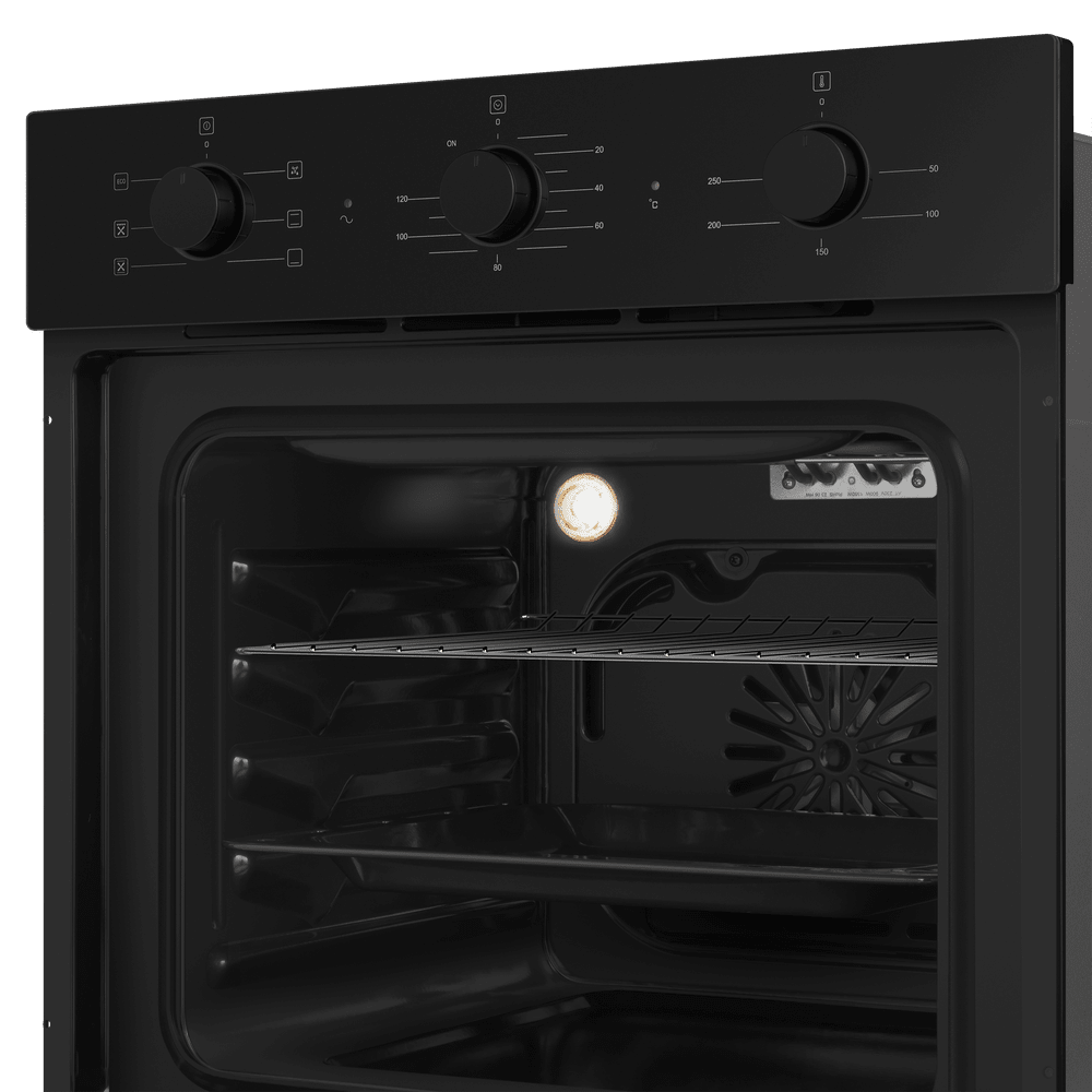 Как известно, стандартная ширина кухонной тумбы составляет около 60 см — поэтому за стандартную ширину встраиваемого духового шкафа принимают 59,5 см. Такие духовки имеют по 3–4 уровня приготовления, в них можно приготовить достаточно объемные блюда. Минимальное значение ширины духовки также соотносится с размерами тумбы для встраивания — оно составляет 44–45 см. Это хороший выбор для небольшой кухни, однако узкие духовые шкафы имеют свои недостатки — в частности, в них невозможно приготовить большой пирог или торт, запечь целый окорок, индейку или большую рыбу.