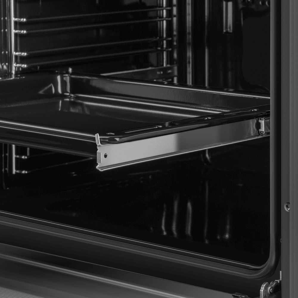 Уровни приготовления — это держатели для противней и решеток, расположенные по бокам камеры. В стандартном шкафу их обычно 4-5, в некоторых моделях доходит до 7 и больше. Для многих блюд имеет значение, на каком уровне их готовить, так как распределение жара происходит по-разному сверху, снизу или посередине. Для выдвижения и переставления противней на этих уровнях есть разного вида направляющие.