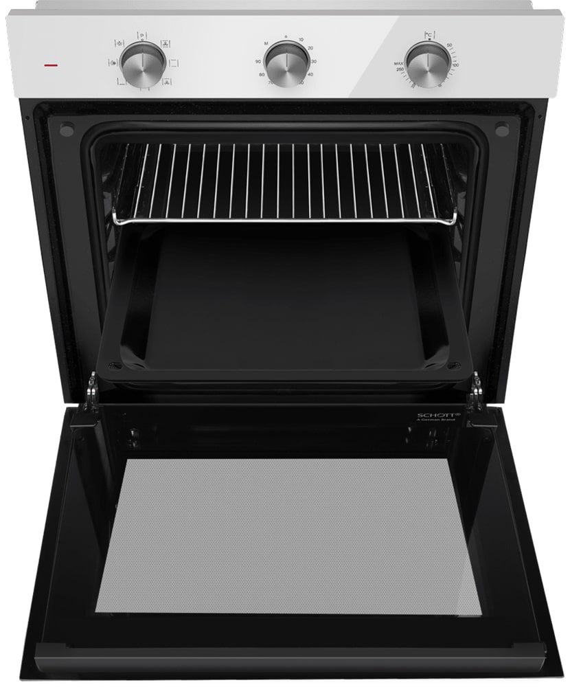 Особенности дизайна и внешней панели управления — также важный пункт при выборе духовки на кухню. В данной модели нужно обратить внимание на цвет — белый, Механическая панель управления позволяет быстро разобраться в настройке программ и не требует чрезмерных усилий.
