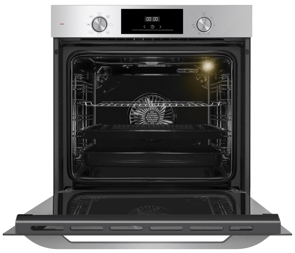 Комбинация сенсорного управления и утапливаемых поворотных регуляторов упрощает настройку режимов и поддержание порядка на панели. Дисплей и таймер помогают точно выдерживать время. По завершении программа сама остановится благодаря автоматическому отключению. Защитные функции продуманы для кухни с детьми: в наличии блокировка. Тангенциальное охлаждение с вентиляцией выводит теплый воздух по периметру, поддерживая стабильную работу и комфорт пользователя во время готовки.