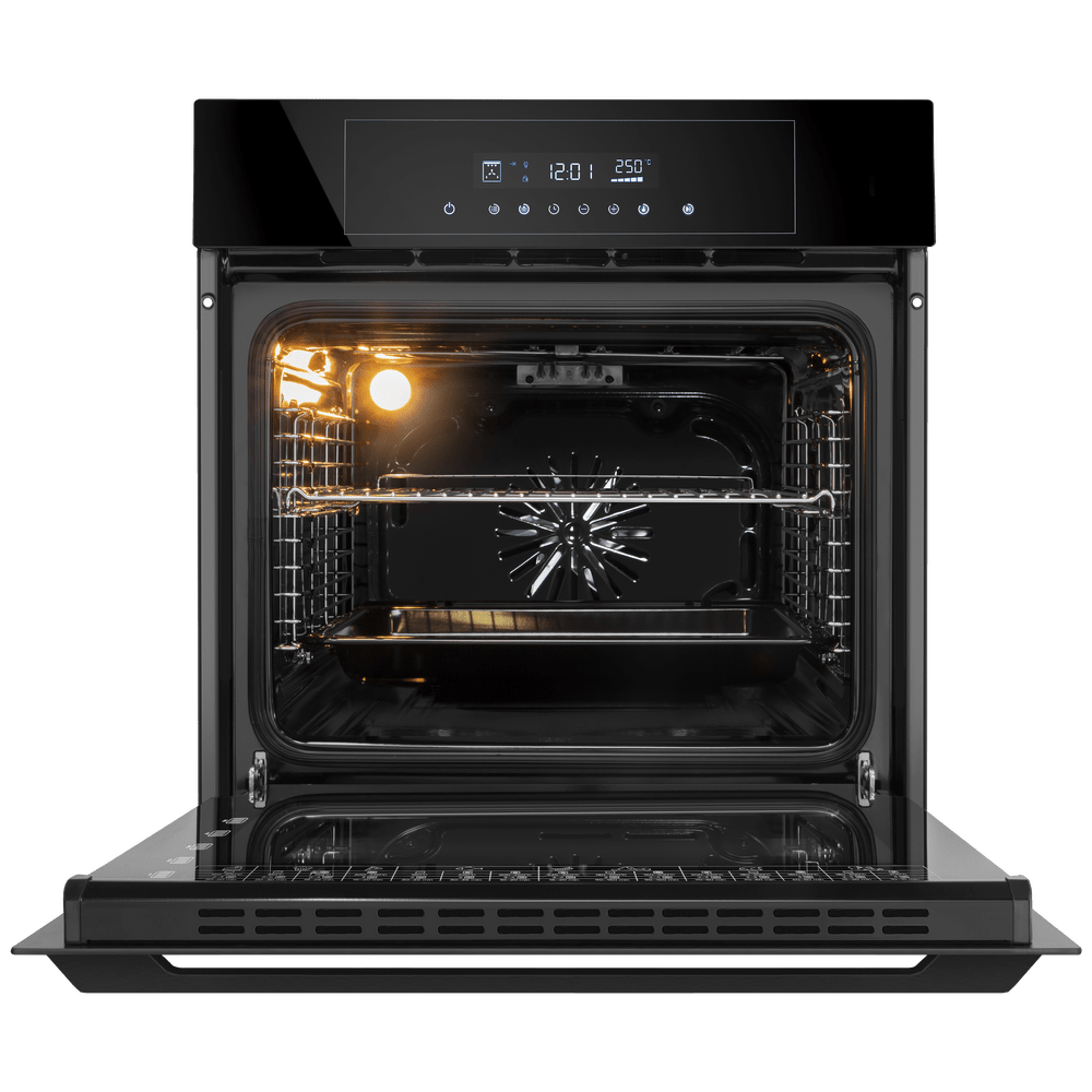 Духовые шкафы объема от 70 литров и более — вместительные полноразмерные приборы, которые отличаются большим набором функциональных возможностей. Высота таких духовок обычно составляет 60 см, ширина же может варьироваться в широком диапазоне: от стандартных 60 см до 90 см и даже 120 см. Количество уровней приготовления может достигать пяти.