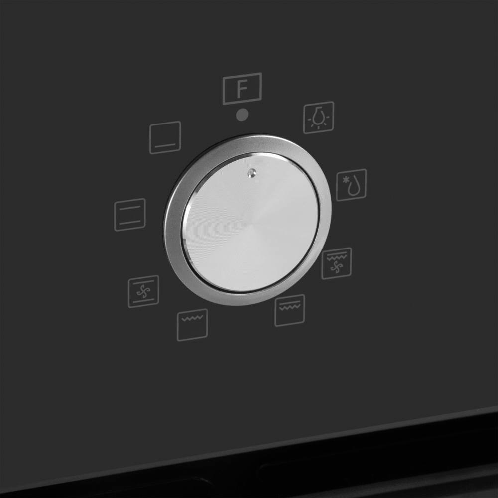 Особенности дизайна и внешней панели управления — также важный пункт при выборе духовки на кухню. В данной модели нужно обратить внимание на цвет — черный, охлаждение двери, чтобы поверхность и мебель вокруг не нагревались. Механическая панель управления позволяет быстро разобраться в настройке программ и не требует чрезмерных усилий.