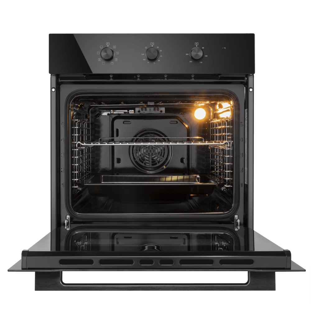 Как известно, стандартная ширина кухонной тумбы составляет около 60 см — поэтому за стандартную ширину встраиваемого духового шкафа принимают 59,5 см. Такие духовки имеют по 3–4 уровня приготовления, в них можно приготовить достаточно объемные блюда. Минимальное значение ширины духовки также соотносится с размерами тумбы для встраивания — оно составляет 44–45 см. Это хороший выбор для небольшой кухни, однако узкие духовые шкафы имеют свои недостатки — в частности, в них невозможно приготовить большой пирог или торт, запечь целый окорок, индейку или большую рыбу.