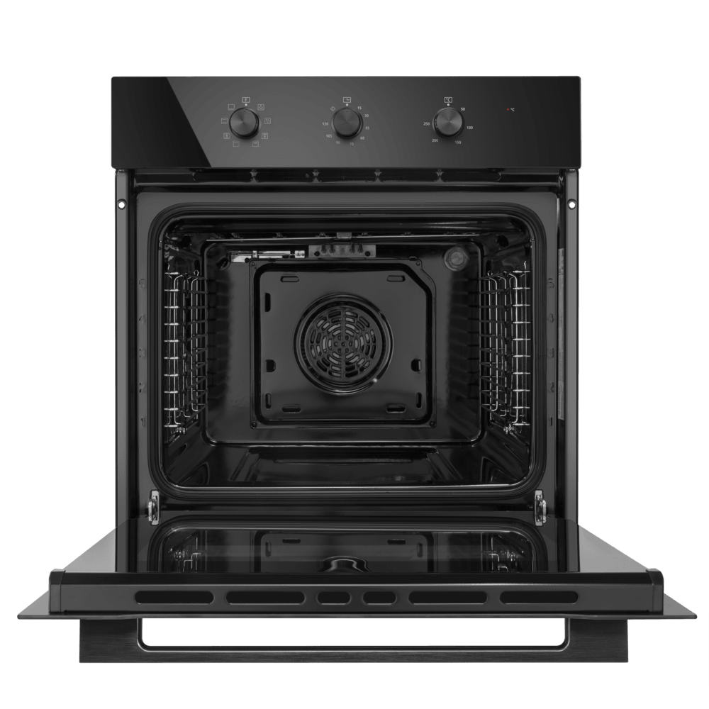 Глубина духовых шкафов, в отличие от их высоты и ширины, не отличается разнообразием. Стандартное значение составляет 54-55 см, что позволяет встраивать устройство в обычную кухонную тумбу или колонну глубиной 60 см так, чтобы оставалось достаточно места до задней стенки мебели или стены кухни для обеспечения нормальной вентиляции. В инструкциях по установке указывается, что это расстояние должно составить не менее 4–5 см. Объем такой духовки может быть равен от 50 до 70 литров.