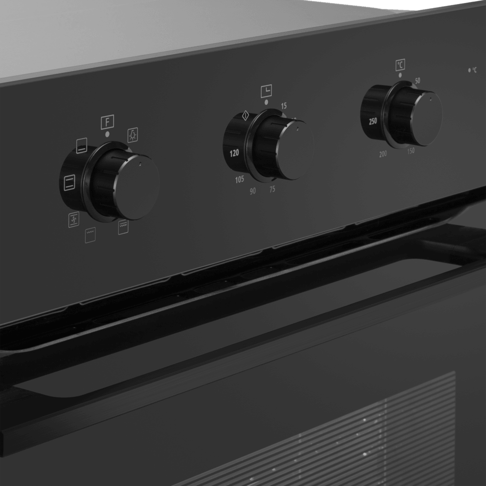 Особенности дизайна и внешней панели управления — также важный пункт при выборе духовки на кухню. В данной модели нужно обратить внимание на цвет — черный, охлаждение двери, чтобы поверхность и мебель вокруг не нагревались. Механическая панель управления позволяет быстро разобраться в настройке программ и не требует чрезмерных усилий.