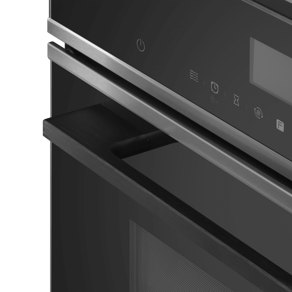Особенности дизайна и внешней панели управления — также важный пункт при выборе духовки на кухню. В данной модели нужно обратить внимание на цвет — черный, охлаждение двери, чтобы поверхность и мебель вокруг не нагревались.