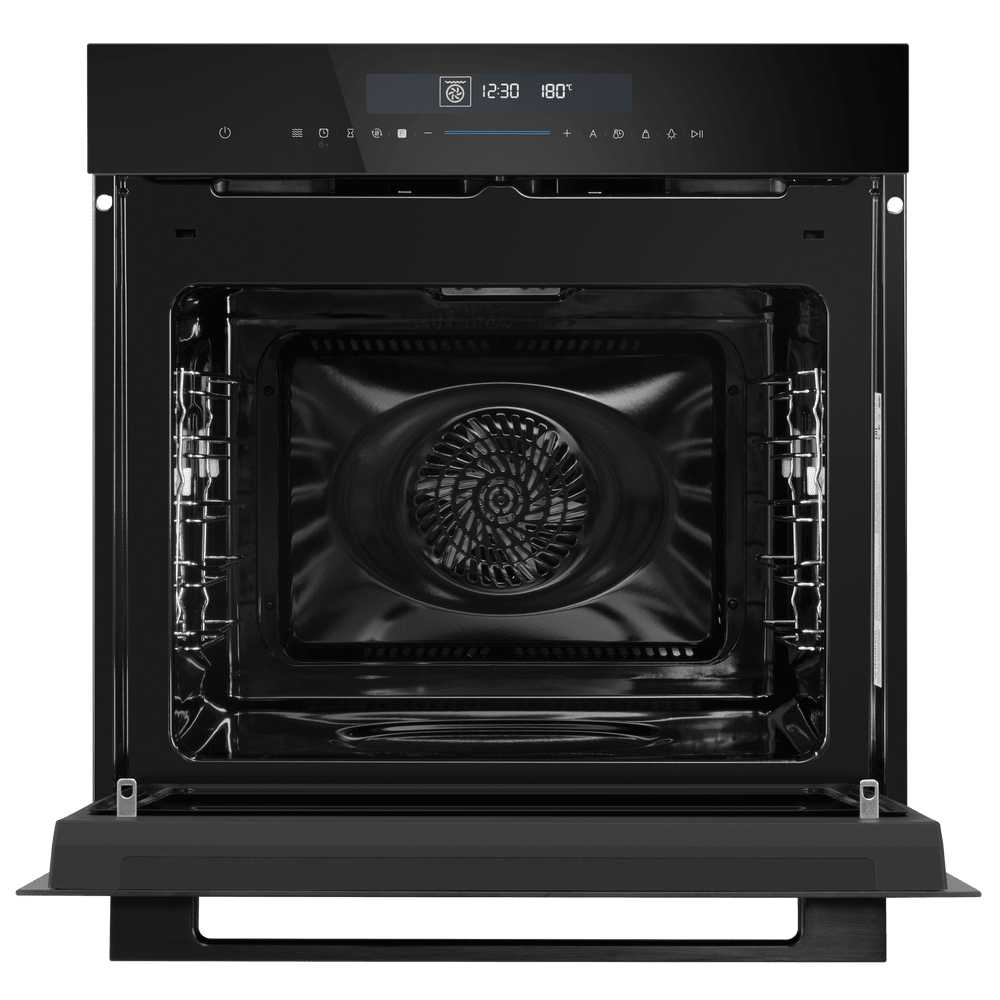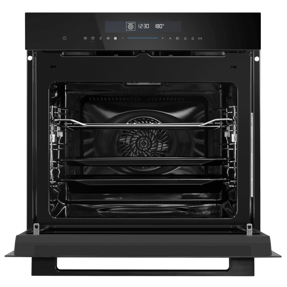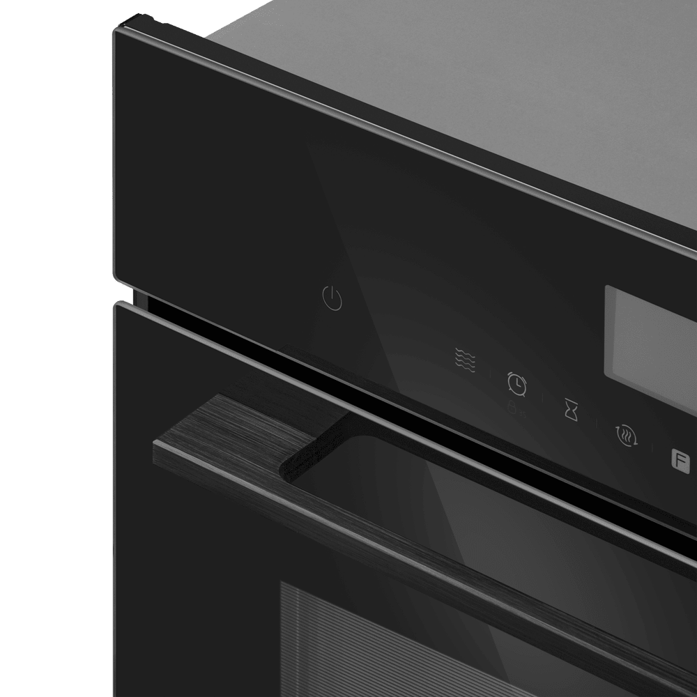 Особенности дизайна и внешней панели управления — также важный пункт при выборе духовки на кухню. В данной модели нужно обратить внимание на цвет — черный, охлаждение двери, чтобы поверхность и мебель вокруг не нагревались.