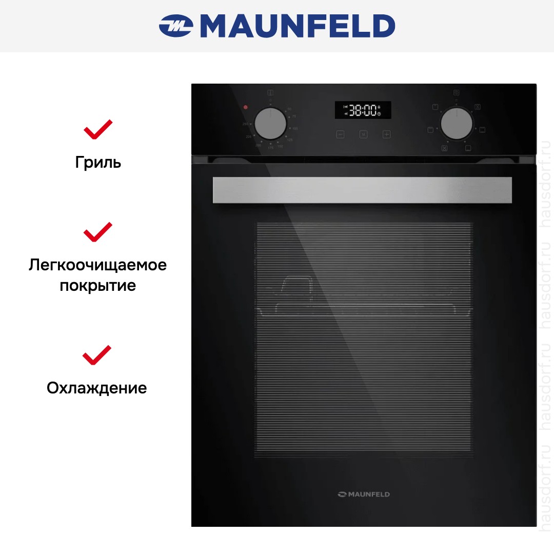 Количество режимов работы в духовом шкафу Маунфилд: 7. В число доступных программ входят: классический нагрев, нижний нагрев, конвекция, гриль для создания хрустящей корочки, и другие.