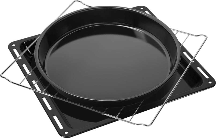 В стандартную комплектацию любого духового шкафа входят один или два противня — эмалированных или с антипригарным покрытием — и решетка. Единственный противень, как правило, имеет низкие бортики и предназначается для приготовления выпечки. Если духовка комплектуется двумя противнями, то второй отличается более высокими бортиками — его можно использовать для запекания мяса, птицы, овощных блюд. На решетке в духовке, не оснащенной грилем, обычно устанавливаются формы для запекания — стальные, керамические или стеклянные. В духовках премиум-класса количество противней может быть увеличено: к стандартному комплекту добавляются противни с перфорацией для мяса, специальные поддоны для сбора выделившегося сока.