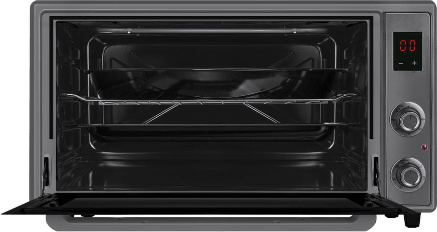 Особенности дизайна и внешней панели управления — также важный пункт при выборе духовки на кухню. В данной модели нужно обратить внимание на цвет — серый,