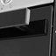 Наиболее распространенным решением является черный фасад духовки, нередко с деталями из металла — например, нержавеющей стали. Этот вариант чаще всего выбирают, если кухня оформлена в современном стиле — хай-тек, минималистическом, техно. Следует помнить, что на черном лучше заметны загрязнения: брызги воды, отпечатки пальцев, разводы, так что эти фасады требуют тщательного ухода.