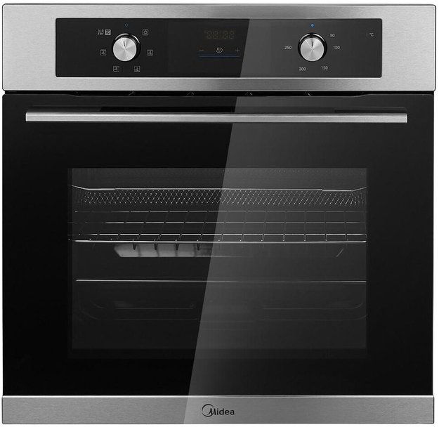 Количество режимов работы в духовом шкафу Мидеа: 7. В число доступных программ входят: классический нагрев, нижний нагрев, гриль для создания хрустящей корочки, и другие. Помимо основных программ воспользуйтесь специальными возможностями этого прибора: размораживанием продуктов, чтобы сократить время на подготовку; и другими. Тип гриля в этой модели — электрический.