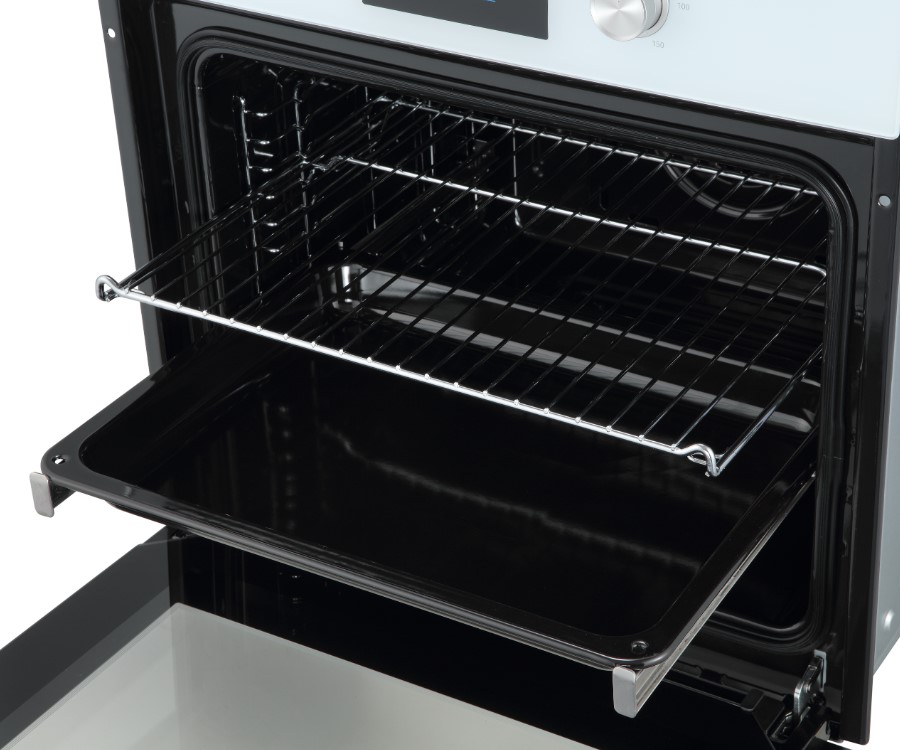 Особенности дизайна и внешней панели управления — также важный пункт при выборе духовки на кухню. В данной модели нужно обратить внимание на цвет — белый,