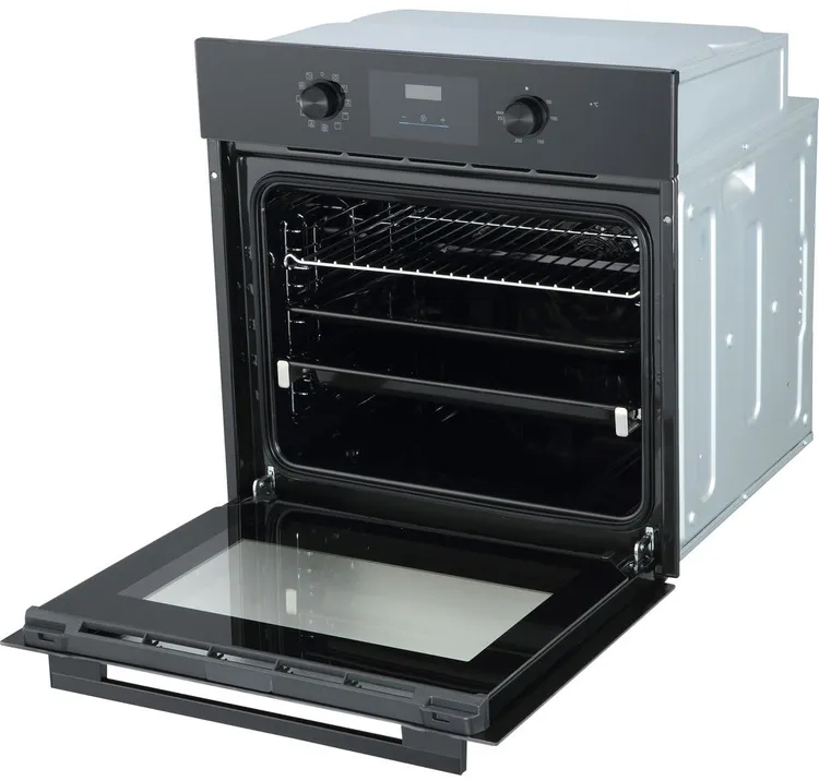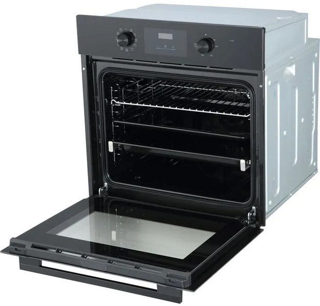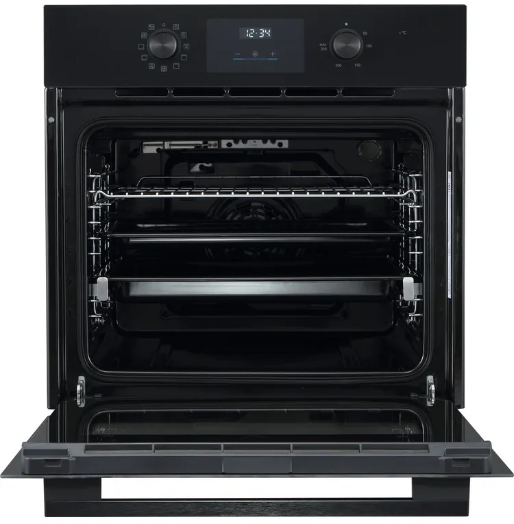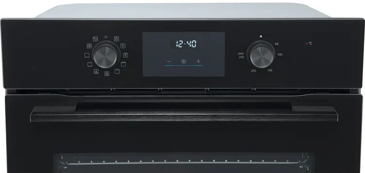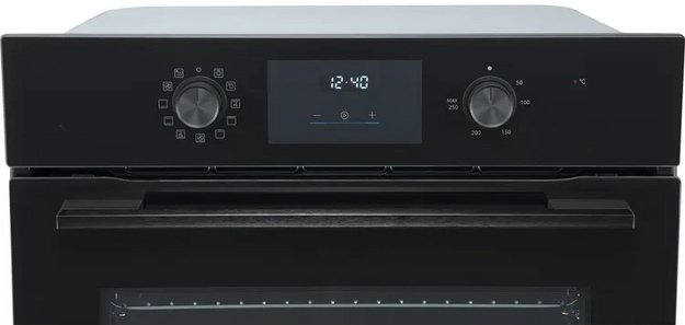 Особенности дизайна и внешней панели управления — также важный пункт при выборе духовки на кухню. В данной модели нужно обратить внимание на цвет — черный,