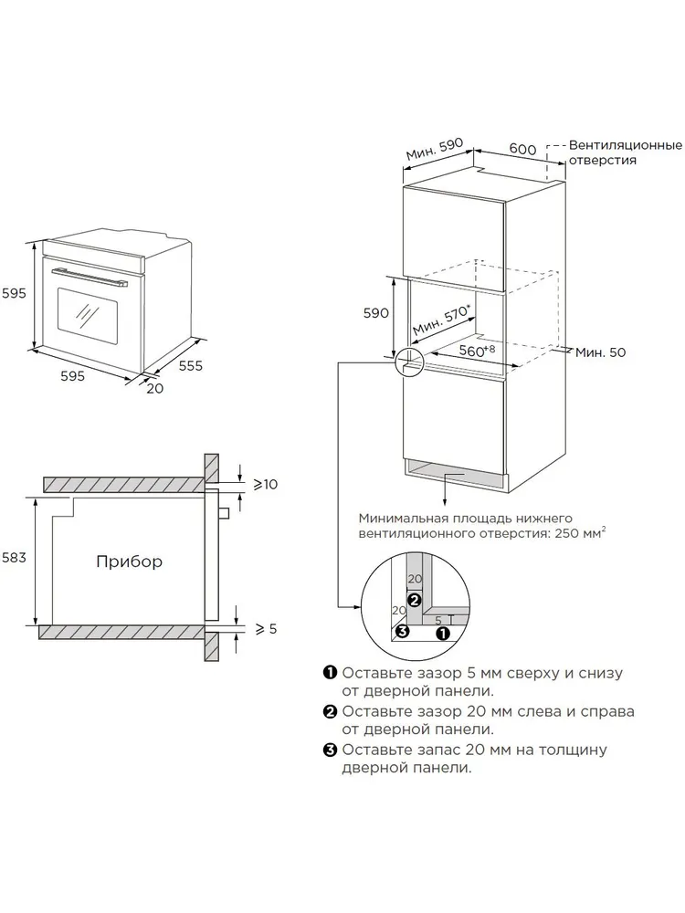 Ко всем моделям прилагаются подробные инструкции по установке, где указаны точные размеры ниши для каждой конкретной духовки.