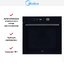 Духовой шкаф Midea MO817100MGB — стильный встраиваемый прибор черного цвета с габаритами 59.5×59.5×56.5 см, который предназначен для установки в нишу размером 60×56×57 см и питается от сети 220-240 В. Его строгий фасад с сенсорной панелью и поворотными ручками выглядит современно и лаконично, а четырёхслойное стекло дверцы обеспечивает хорошую теплоизоляцию и повышенную безопасность на кухне.