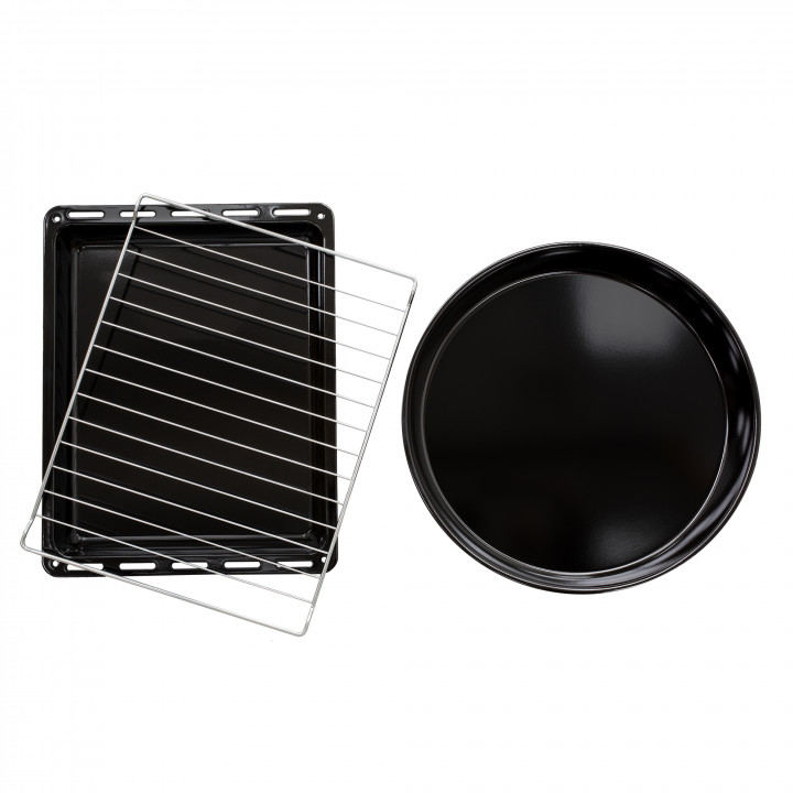 В стандартную комплектацию любого духового шкафа входят один или два противня — эмалированных или с антипригарным покрытием — и решетка. Единственный противень, как правило, имеет низкие бортики и предназначается для приготовления выпечки. Если духовка комплектуется двумя противнями, то второй отличается более высокими бортиками — его можно использовать для запекания мяса, птицы, овощных блюд. На решетке в духовке, не оснащенной грилем, обычно устанавливаются формы для запекания — стальные, керамические или стеклянные. В духовках премиум-класса количество противней может быть увеличено: к стандартному комплекту добавляются противни с перфорацией для мяса, специальные поддоны для сбора выделившегося сока.