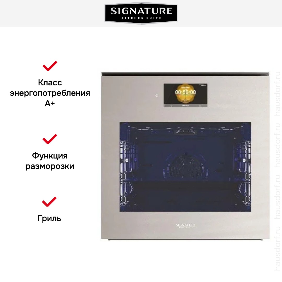 Готовьте свои лучшие блюда и пробуйте новые рецепты с духовым шкафом Signature Kitchen Suite SKSOV2421MS! Стандартные размеры и большой объем внутренней камеры — выбор тех, кто много готовит для семьи или частых праздничных встреч с друзьями. Желательно заранее продумать расположение такой модели в кухонном гарнитуре.