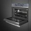 Smeg SF4104WMCS — компактный многофункциональный духовой шкаф. Имеет 14 режимов приготовления, а также ряд полезных функций: размораживание по времени и весу, поднятие теста, шаббат. Оснащен цветным TFT-дисплеем с сенсорным управлением, с помощью которого можно легко настраивать температуру в диапазоне от 30 до 250 С. В камере предусмотрено три варианта расположения противней. Пользователь также может готовить сразу же на нескольких. За счет равномерного распределения тепла результаты приготовления будут одинаково качественными. Функция поддержания температуры позволяет держать блюда горячими до подачи на стол. Среди преимуществ: тангенциальная система охлаждения, паровая очистка, режим ограничения мощности.