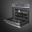 Smeg SF4106WMCS — компактный многофункциональный духовой шкаф высотой 45 см. Имеет 14 режимов приготовления, 5 из которых с использованием микроволн. Оснащен цветным TFT-дисплеем с сенсорным управлением и электронным программатором, включающим таймер, отсрочку включения и автоматическое отключение. При своих компактных размерах модель имеет хороший объем — 40 литров. Внутри противень можно расположить на любом из трех вариантов. Кроме этого, за счет равномерного распределения горячего воздуха и поддержания заданной температуры, пользователь может готовить сразу же на нескольких противнях одновременно. Среди преимуществ: 3 стекла дверцы, паровая очистка, откидной гриль.