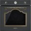 Таймер с автоматическим отключением звуковым сигналом оповестит о завершении работы. Тангенциальная система охлаждения экономит расход электроэнергии и не нагревает корпус духовки. Прибор выполнен в стиле ретро в цвете антрацит и дополнен фурнитурой в латунном исполнении и часами с механическим таймером. Ручки управление отвечают за выбор режима нагрева и температуру. Плавный и легкий ход позволяет быстро и с комфортом установить нужные настройки.