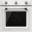 Модель идеально подойдет для дизайнерских решений в стиле рустик. Каждая из ручек имеет графическое обозначение для комфортной регулировки. Расшифровку иконок режимов нагрева можно найти в инструкции, которая прилагается к каждому прибору. Регуляторы обладают удобным хватом и плавной прокруткой. Несмотря на стандартные внешние размеры, прибор отличает большой внутренний объем — 70 литров, что позволяет готовить на нескольких уровнях одновременно. Благодаря одинаковому температурному режиму внутри камеры еда на каждом из уровней одинаково хорошо пропекается.