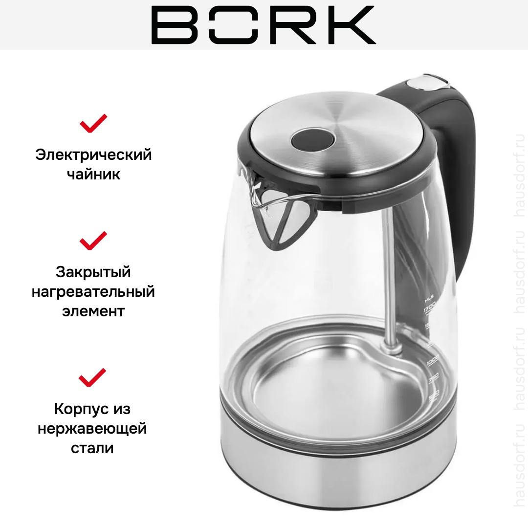 Эргономичная модель от известного бренда. Автоматическое отключение при отсутствии воды и прорезиненная ручка делают чайник безопасным и удобным в использовании.