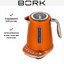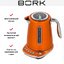 Чайник Bork выполнен из прочной нержавеющей стали, яркий оранжевый цвет освежает интерьер. На поворотной базе расположены кнопки управления — своя под каждый температурный режим. Помимо температурных подсказок они снабжены пояснениями, какой режим для заваривания какого сорта чая подходит. Функция поддержания тепла позволяет сохранить необходимый нагрев до 20 минут после выключения.