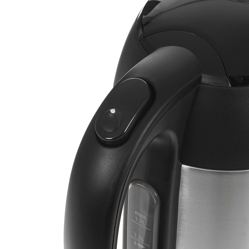 Материал корпуса: нержавеющая сталь. Материал подставки: пластик. Объем (л): 1.7. Цвет: нержавеющая сталь. Мощность (Вт): 2400. Управление: механическое.