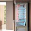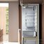 Встраиваемые холодильники монтируются в нишу или колонну. Передняя их часть закрывается декоративным мебельным фасадом и снаружи не отличается от дверцы обычного кухонного шкафа, так что их не нужно подбирать под интерьер помещения. Объем этих холодильников, как правило, несколько меньше, чем у отдельностоящих, так как при встраивании необходимо оставлять свободное пространство для вентиляции. Они отличаются меньшим уровнем шума, а также лучше держат холод и отличаются большей экономичностью из-за дополнительного слоя изоляции. Ассортимент этих холодильников не так велик, как у отдельно стоящих, установка более трудоемкая, а стоимость обычно несколько выше.