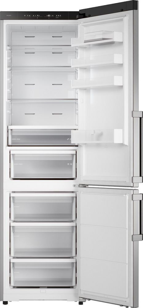 Специальная зона свежести предназначена для правильного и более длительного хранения овощей, фруктов, зелени. В ней поддерживается околонулевая температура, поэтому продукты не перемораживаются и не пересыхают. Система охлаждения этого холодильника — циркуляционная .