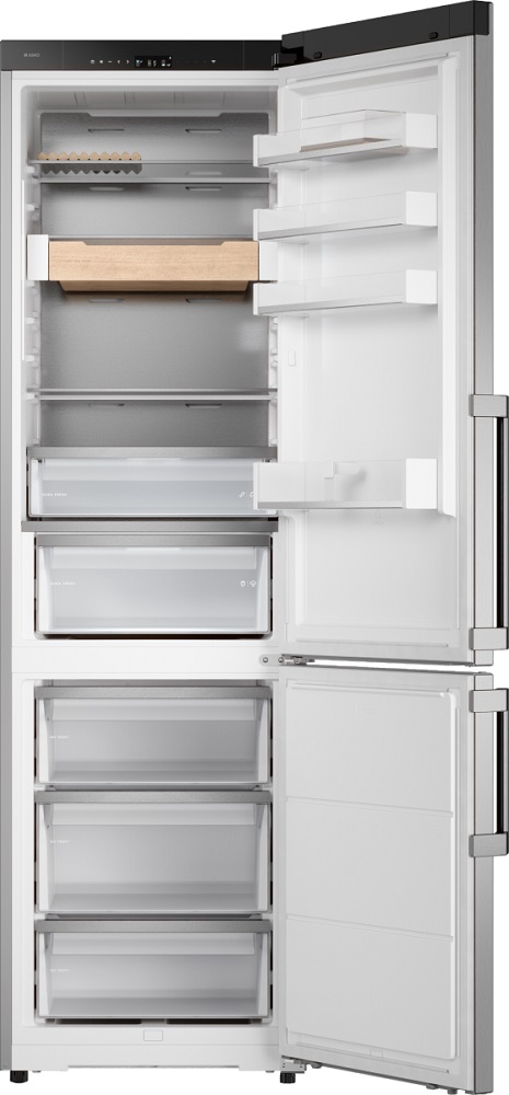 Трехкамерные модели выпускаются в нескольких вариантах. В некоторых случаях в качестве третьей камеры поступает так называемая зона свежести — отделение, где поддерживается температура около 0 градусов. В другом варианте подобные модели имеют морозильную камеру, состоящую из двух выдвижных ящиков.