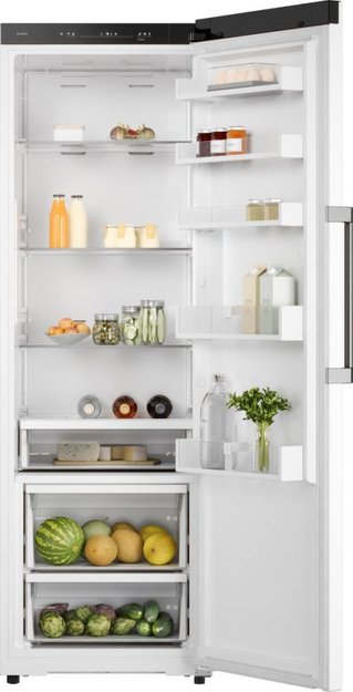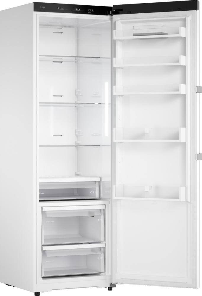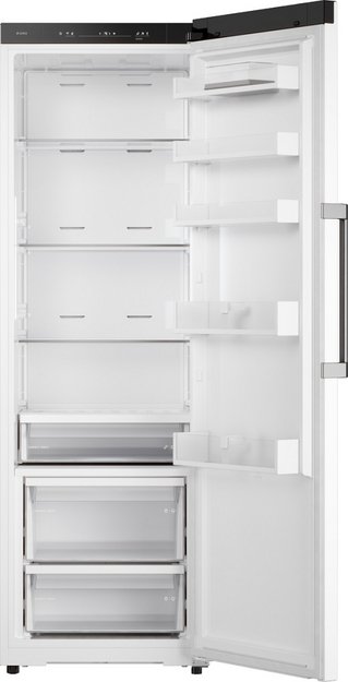 Данная модель — отдельностоящая, поэтому нужно тщательно подобрать место для ее размещения. Вы можете поменять направление открывания двери, так как упор переставляемый и ее можно перевесить на другую сторону. Такая функция открывает больше возможностей для установки. Холодильник без морозильной камеры имеет свои преимущества: больше места для хранения продуктов краткого срока годности, разнообразие полок и ящиков для овощей, фруктов, молочных изделий. Количество камер: 1.
