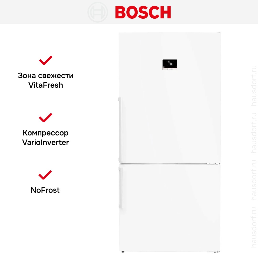 Двухкамерный холодильник Bosch KGP86FWC0N — замечательный выбор для всех, кто нуждается в надежном и современном приборе, чтобы обустроить кухню по последнему слову техники.