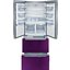 Холодильник Bosch KMF40SA20R выполнен в фиолетовом цвете под стеклом. Модель класса French Door имеет двухстворчатую холодильную камеру и выдвигающиеся ящики морозильной камеры внизу.