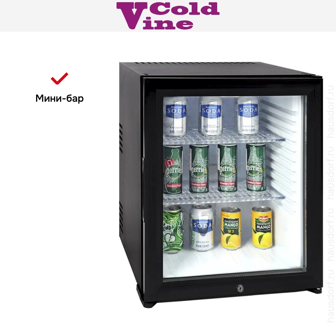 Мини-бар представляет собой небольшой холодильник, предназначенный для хранения напитков, устанавливается обычно в номере отеля. Кроме напитков, в подобном холодильнике может храниться ограниченное количество закусок, таких как: чипсы, орехи или шоколад.