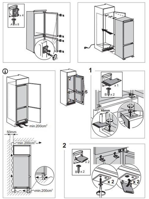 При всем сходстве с обычными отдельностоящими холодильниками частично встраиваемые модели имеют свои конструктивные особенности. Они связаны прежде всего с тем, что при встраивании необходимо обеспечить вентиляцию задней и боковых стенок, а также снизить уровень шума и вибраций. Как правило, проблема решается при помощи специальной системы вентиляции, когда вентиляционные решетки располагаются в нижней части корпуса холодильника.