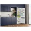 Увеличенная высота корпуса позволяет разместить больше продуктов без ущерба для организации пространства: регулируемые стеклянные полки, вместительные ящики для овощей и фруктов, а также продуманные дверные отсеки обеспечивают рациональное хранение любых упаковок и контейнеров. Нижнее расположение морозильного отделения повышает эргономику — наиболее часто используемые свежие продукты находятся на уровне глаз, а замороженные — внизу, что соответствует логике повседневного использования.