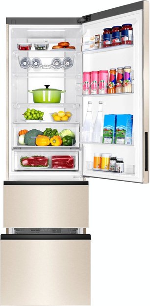 Трехкамерные модели выпускаются в нескольких вариантах. В некоторых случаях в качестве третьей камеры поступает так называемая зона свежести — отделение, где поддерживается температура около 0 градусов. В другом варианте подобные модели имеют морозильную камеру, состоящую из двух выдвижных ящиков.