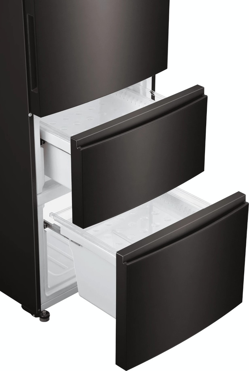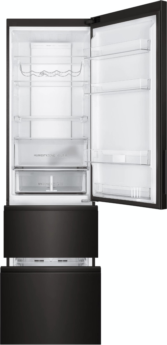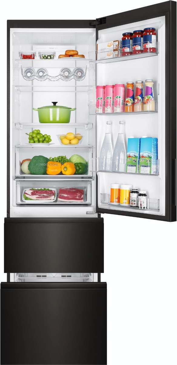 Трехкамерные модели выпускаются в нескольких вариантах. В некоторых случаях в качестве третьей камеры поступает так называемая зона свежести — отделение, где поддерживается температура около 0 градусов. В другом варианте подобные модели имеют морозильную камеру, состоящую из двух выдвижных ящиков.