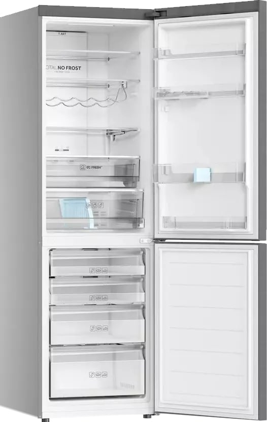 No Frost (Total No Frost, Frost Free): вентилятор обеспечивает циркуляцию охлажденного воздуха, благодаря чему лед не нарастает на стенке, а концентрируется только на скрытом внутри холодильника испарителе. Талая вода собирается в специальной емкости и испаряется. Такой холодильник не нужно размораживать – это экономит время и позволяет не останавливать прибор. Благодаря этим плюсам в современных моделях No Frost – самая распространенная система.