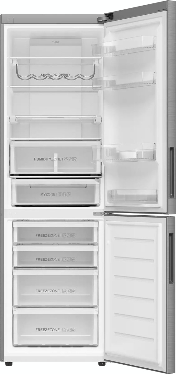 No Frost (Total No Frost, Frost Free): вентилятор обеспечивает циркуляцию охлажденного воздуха, благодаря чему лед не нарастает на стенке, а концентрируется только на скрытом внутри холодильника испарителе. Талая вода собирается в специальной емкости и испаряется. Такой холодильник не нужно размораживать – это экономит время и позволяет не останавливать прибор. Благодаря этим плюсам в современных моделях No Frost – самая распространенная система.
