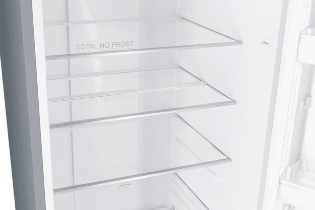 No Frost (Total No Frost, Frost Free): вентилятор обеспечивает циркуляцию охлажденного воздуха, благодаря чему лед не нарастает на стенке, а концентрируется только на скрытом внутри холодильника испарителе. Талая вода собирается в специальной емкости и испаряется. Такой холодильник не нужно размораживать – это экономит время и позволяет не останавливать прибор. Благодаря этим плюсам в современных моделях No Frost – самая распространенная система.