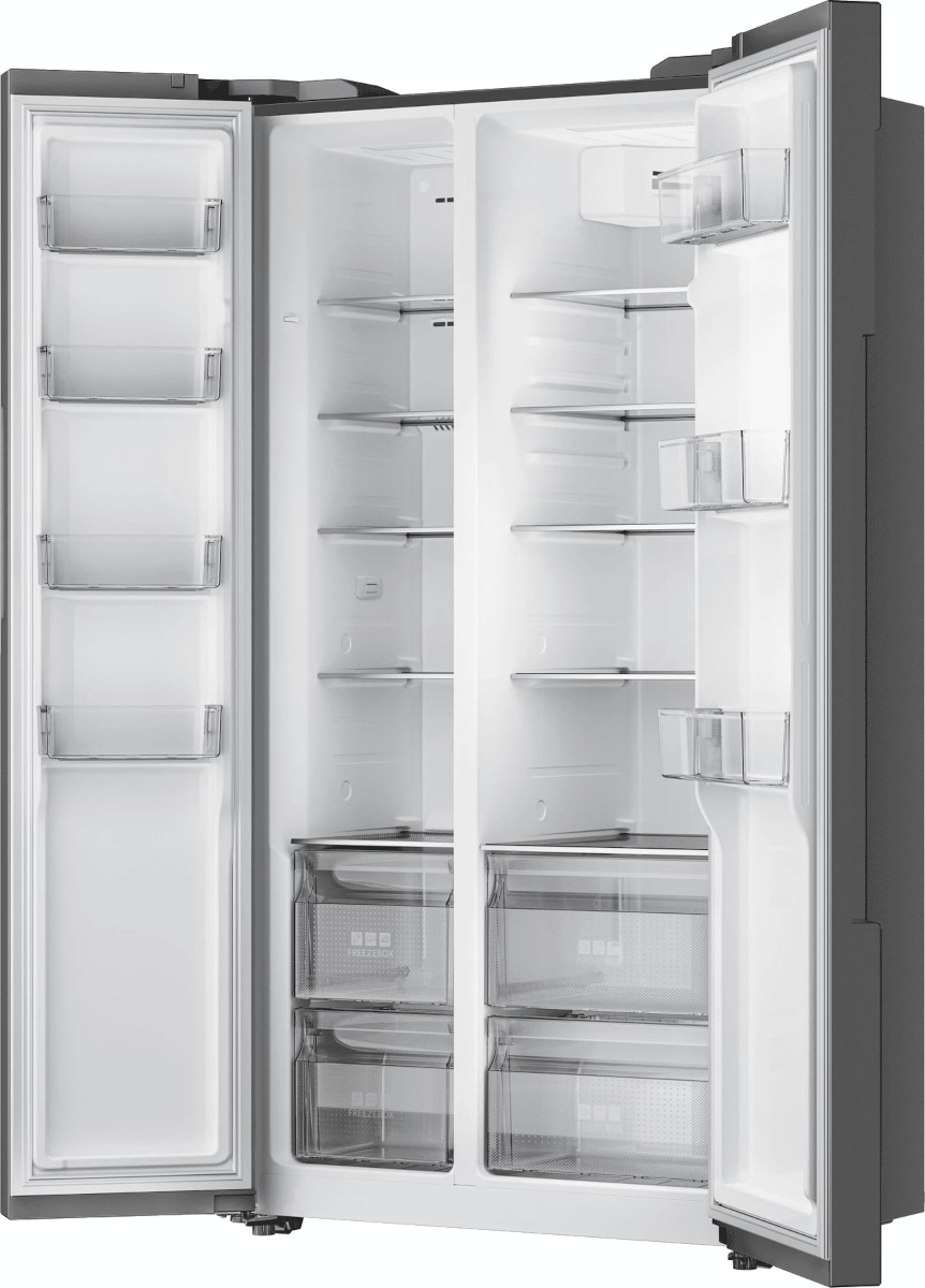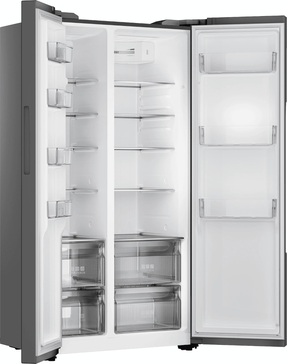 Данная модель — отдельностоящая, поэтому нужно тщательно подобрать место для ее размещения. Холодильник Side-by-Side с необычным расположением камер — сбоку друг от друга — позволяет увеличить объем продуктов для хранения. Такой вариант подходит обладателям просторной кухни, большим семьям, людям, которые запасают продукты и готовят впрок. Количество камер: 2.