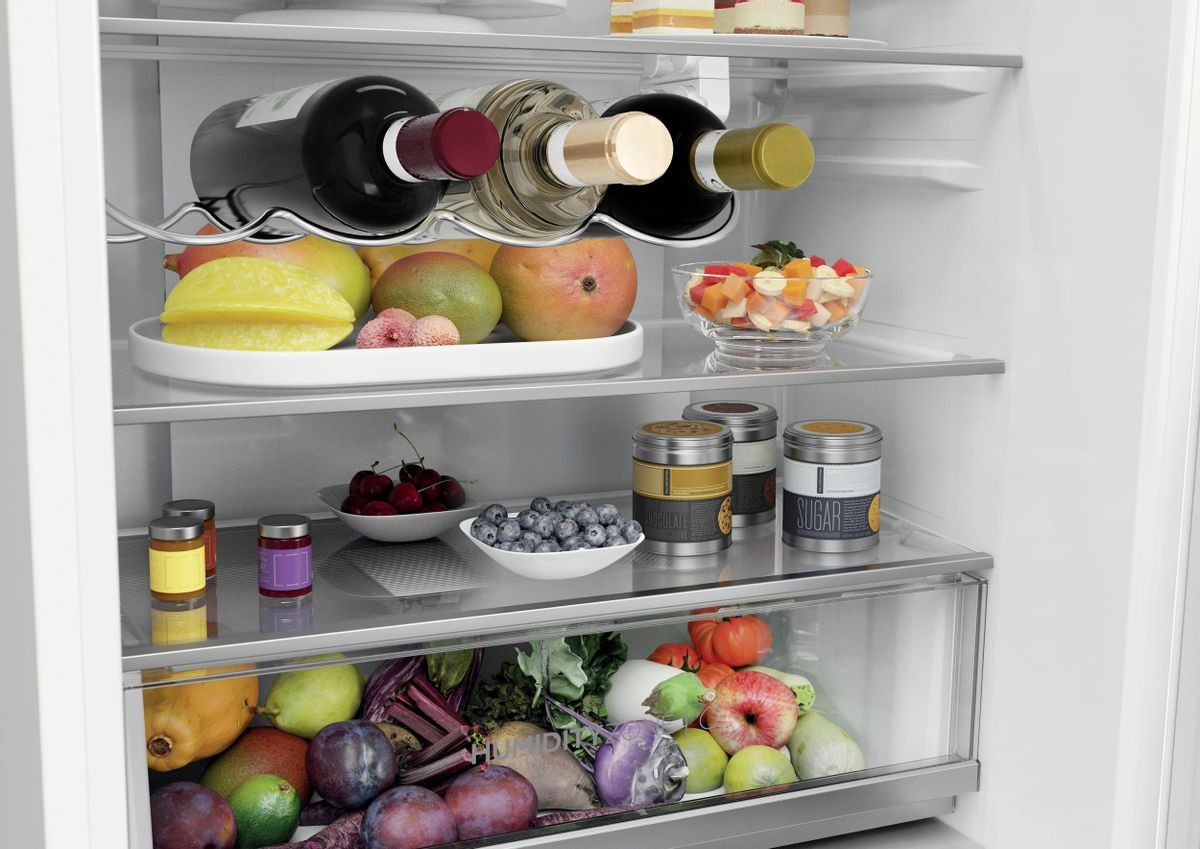 Вместительные контейнеры позволяют хранить достаточное количество овощей и фруктов. Для более длительного хранения и поддержания свежести овощей и фруктов разработаны специальные системы хранения. Среди них, например, зона свежести с увеличенной влажностью до 85% и температурой около 0 градусов. Это герметично закрывающийся ящик, часто на выдвижных роликах или направляющих, в котором имеется специальное задвижка, позволяющая регулировать влажность. Как известно, при более высокой влажности продукты с большим содержанием воды дольше остаются свежими.