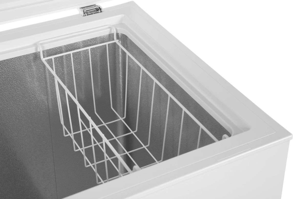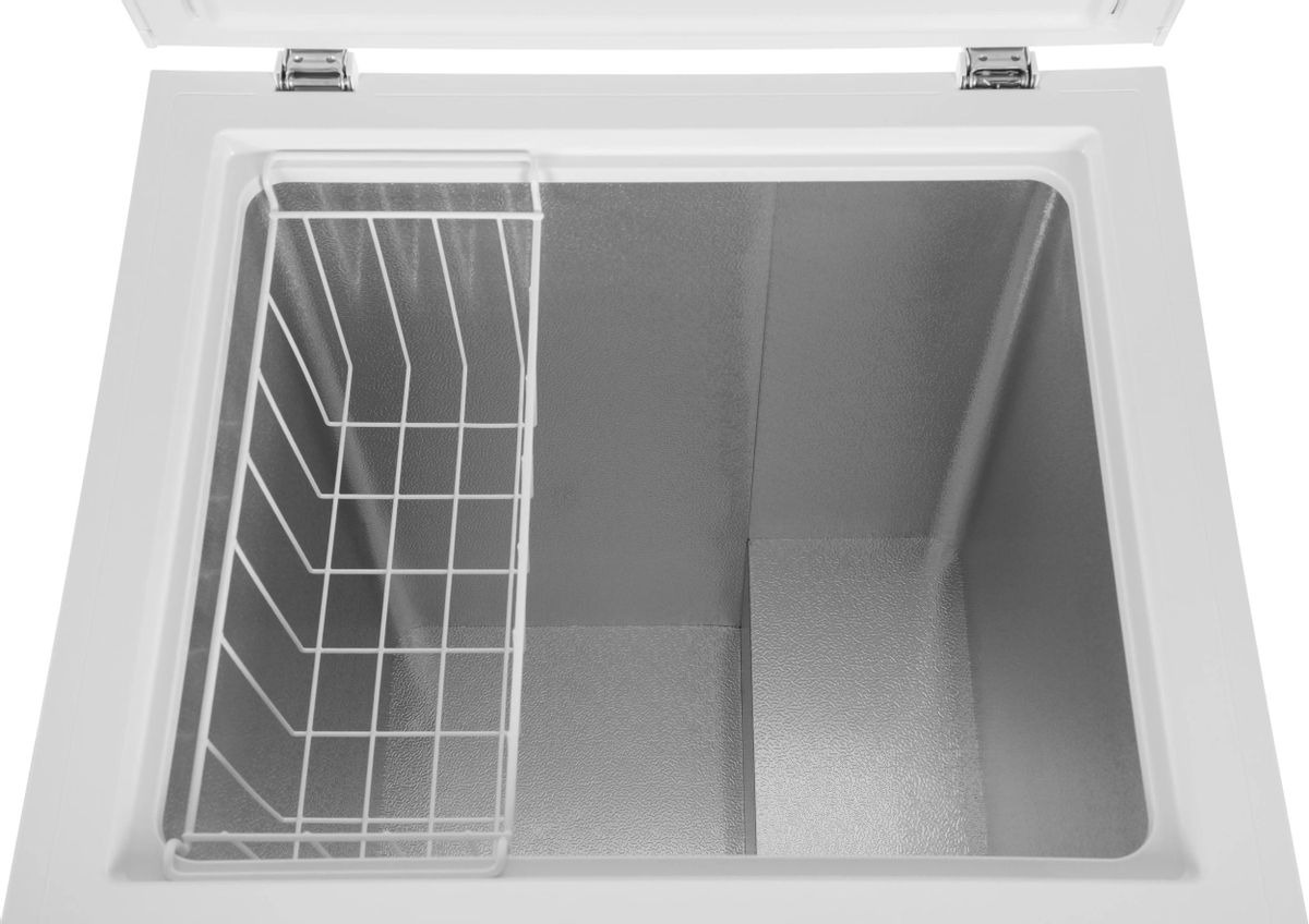 Внутренняя камера морозильного ларя, как правило, не содержит полок, ящиков и других подобных разделителей — это большой цельный отсек, в котором сверху могут крепиться металлические сетчатые корзины. Такая конструкция позволяет максимально увеличить вместительность устройства.