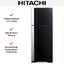 Холодильник Hitachi HRTN7489DFGBKCS — отдельно стоящий двухкамерный прибор с изящным черным фронтом из закаленного стекла. Его габариты 183.571.574 см и общий полезный объем 450 литров делают устройство удобным выбором для большой семьи или тех, кто часто принимает гостей. Верхнее морозильное отделение рассчитано на 117 литров, а холодильное — на 333 литра, что позволяет рационально распределять продукты по зонам хранения.