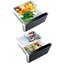 Ящики для продуктов изготавливаются либо целиком из прозрачного пластика, либо часто имеют переднюю прозрачную панель, которая обеспечивает лучший обзор. Полки в большинстве холодильников могут перемещаться по высоте, устанавливаются на специальных направляющих и без труда снимаются для очистки.