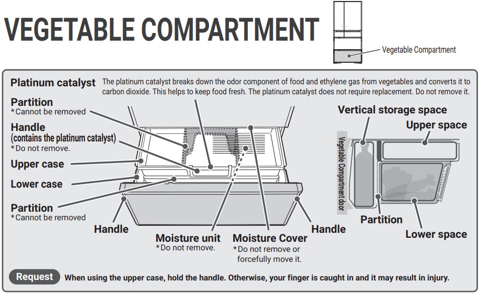В некоторых подобных устройствах, например, в холодильниках Hitachi, выделяется отделение с технологией вакуумирования продуктов, увеличивающей срок их хранения, а также отдельный герметичный отсек для хранения овощей со специальной технологии поддержания свежести и контролем влажности.